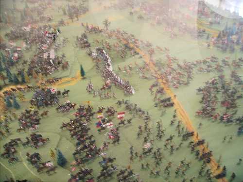 Die Ausstellung scheint somit sehr interessant zu sein, wir aber verirrten uns vorerst in einen Raum, in dem unter Glas eine Schlacht dargestellt ist.