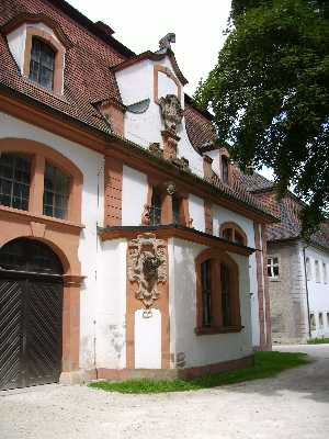 Die weitläufige Dreiflügelanlage und die Schlosskirche Mariä Himmelfahrt und St. Ulrich (1746) entstanden von 1718 bis 1731. Sehenswert ist das Treppenhaus und die ehemaligen Räume des Landkomturs.Eine gerade Straße führte an Wiesen und Feldern vorbei und dann über eine kleine Brücke. Schon lag linkerhand das Schloss und rechts noch andere Gebäude, die seinerzeit dazu gehört hatten, u. a. die Schlossbrauerei.